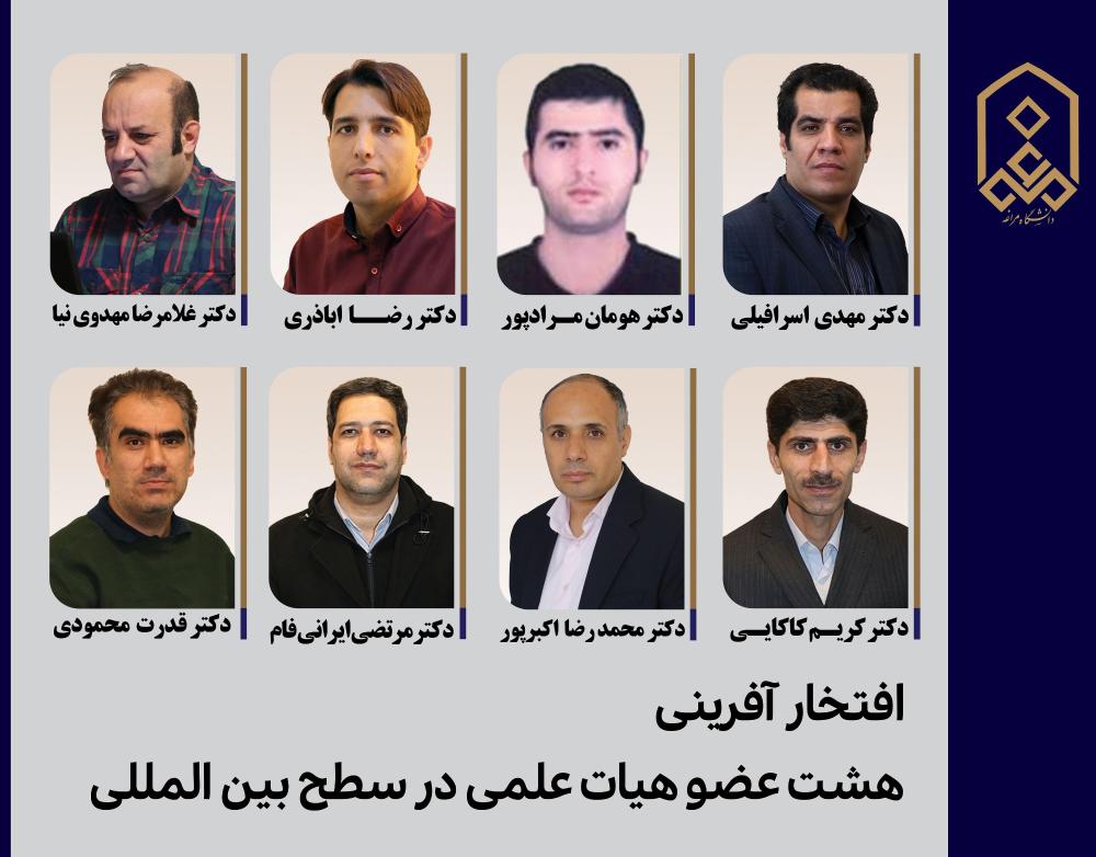 بر پایه این گزارش، از دانشگاه مراغه به ترتیب دکتر رضا اباذری در حوزه موضوعی شیمی، دکتر محمدرضا مرشدلو در حوزه کشاورزی و دکتر مهدی اسرافیلی در حوزه موضوعی شیمی در فهرست پژوهشگران یک درصد برتر جهان جای گرفتهاند.